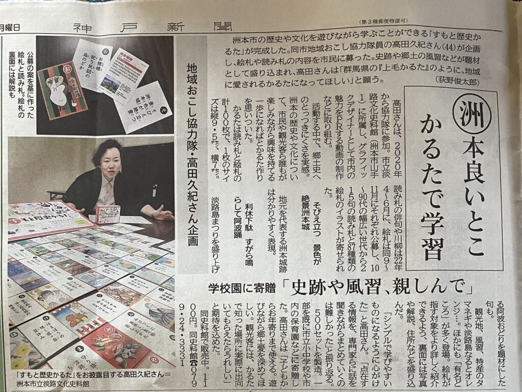 神戸新聞に『すもと歴史かるた』をとりあげていただきました。